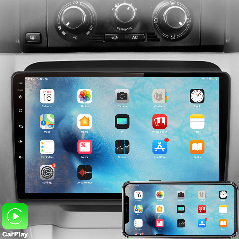 - Fonctions principales : Android Auto – CarPlay – Navigation GPS 3D – WiFi – Bluetooth – DSP – FM avec RDS – Microphone – Écran partagée – DSP – RDS